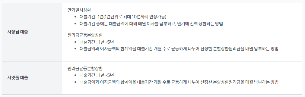 만기일시상환: 1년(1년 단위로 최대 10년까지 연장가능)